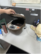 C321-1室发现烹饪电器,冰箱结霜未清理;C322-2室冰箱放置点不合理,冰箱内存放食物;C322-2室、C331室发热设备旁堆积纸箱、泡沫箱等易燃物