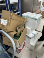 C326室纸箱堆积,药材、回收溶剂未放在相应位置;室内存有食物包装且未贴标签;恒温恒湿箱顶部积尘严重;垃圾未及时清理