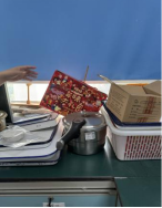 C323-1室酒精灯放置于仪器设备、易燃杂物旁;闲置仪器、药材、纸箱、试剂、泡沫材质等物品堆积,未及时规整或清理