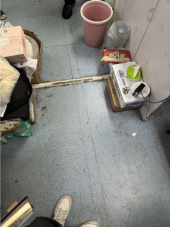 个别实验室也存在一些安全隐患问题:(1)冰箱旁堆放泡沫箱;废液瓶及实验用料瓶罐未放置相应位置(C413-2室);(2)充电器未拔(C412室);(3)部分实验室和休息室存在卫生脏乱、值日安排不到位的情况,包括:①室内较杂乱,需规整。(C419室、C413-1室);②地面较脏;室内环境较杂乱;休息室存放较多烹饪调料;未安排卫生值日表(C412室);③值日表时间未更新(C413室)。