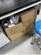 C306室纸箱堆放在冰箱隔壁;杂物堆放过多;实验室存放食物、饮用水杯