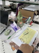 在对药理学部科研实验室的检查中发现,部分实验室依然存在安全隐患及卫生等问题及需落实整改。其中C306室问题较多,需重点整改,主要包括:(1)实验室放置食物、饮用水杯;(2)室内环境凌乱,杂物过多,且部分为个人物品;(3)纸箱等易燃物品堆放在冰箱隔壁。