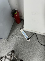 其它个别实验室也存在一些安全隐患问题:(1)排插放置地面(C212室、C210室、C211室、C207室);(2)饮用水和食物放置于实验室(C208室、C312室);(3)实验人员未穿实验服(C206室)。(4)部分实验室存在一些卫生脏乱、值日安排未到位的情况,如:①室内杂物较多、环境较凌乱,实验桌积尘严重,卫生管理未到位(C312室、C310室);②值日安排表的时间超前,未及时更新(C211室、C311室)。