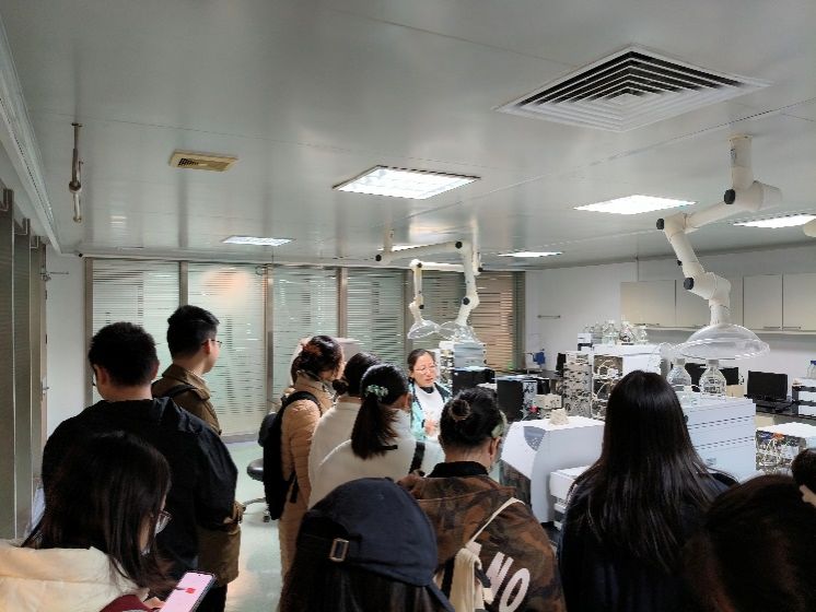 随后,李老师还介绍了包括喷雾干燥仪、冻干机、高效液相色谱仪等仪器,也说明了不同的仪器设备在中医药研究中的独特作用及其适用范围。通过这次参观,同学们深刻认识到不同技术手段在推动中医药现代化进程中所扮演的角色,也体会到了科技力量对于提升中医药疗效的重要性。