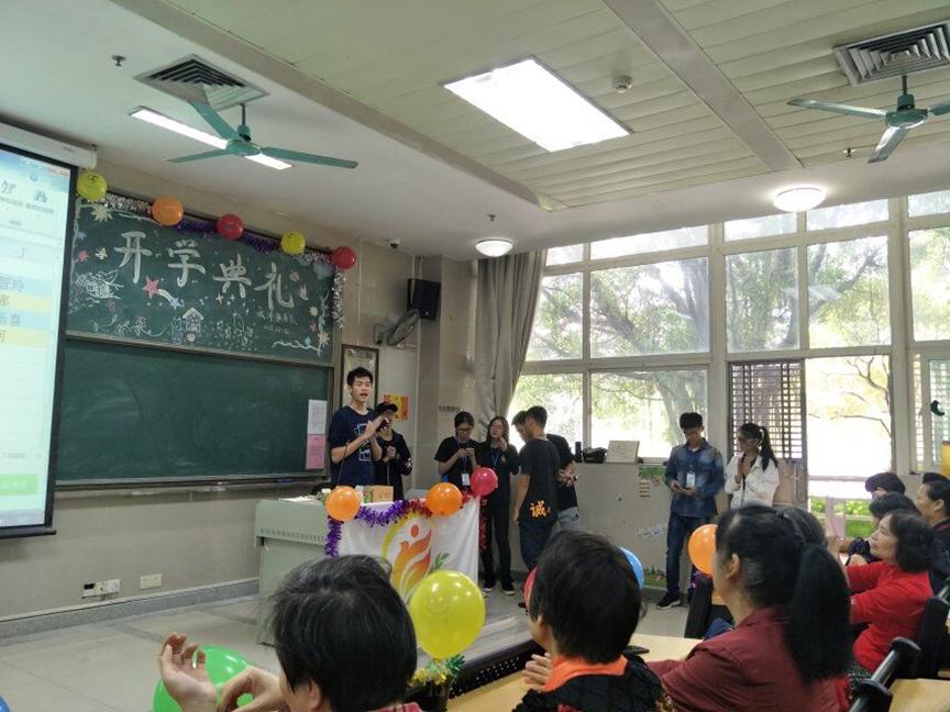 一大早,队员们就在综合楼104布置现场,为长者们的到来做足准备。活动9点正式开始。在舒缓的音乐声中,开展了破冰游戏,长者们与队员热络了起来。“开学典礼”环节,队员陈锐群向大家介绍了广州中医药大学的基本情况。接着,长者们在队员们一对一的带领和讲解下步行环绕教学区,欣赏校园风景与特色建筑。在田径场,举行了兵乓球接力游戏。下午,队员们精心准备了一堂中医药知识课堂,向参与活动的长者介绍养生方法和药膳的制作方法及功效,并现场教他们制作香囊和滴胶,让长者们体验到了大学课堂的乐趣。最后,进行了“毕业典礼”,长者们穿上学士服,颁发了毕业证书,在博物馆门前合影留念。