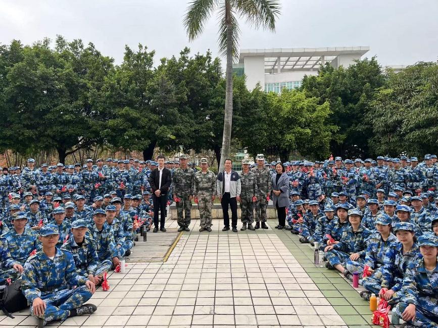 陈其煌副书记一行与教官们进行了友好交谈,向教官们了解学生军训的基本情况和表现,并对承担我院新生军训工作的教官们表示衷心感谢。教官们肯定了我院的军训服务工作,并对新生们的优良表现给予肯定。