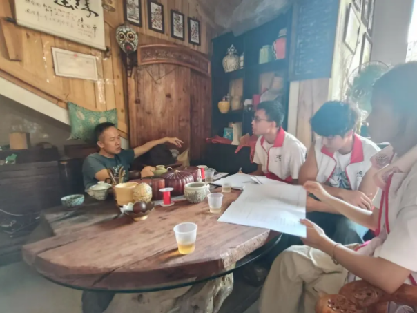 为深入了解岭南文化的独特魅力、增强文化自信,队员们实地调研了著名的信宜沉香与广东省级非遗项目——镇隆飘色。7月19日,队员们在信宜镇隆明珠飘色团艺术展馆观摩了精妙的飘色制作工艺,同时就非遗的传承现状、面临的挑战及在当代社会的保护与发展策略等问题,和非遗文化传承人刘天一进行了深入探讨。