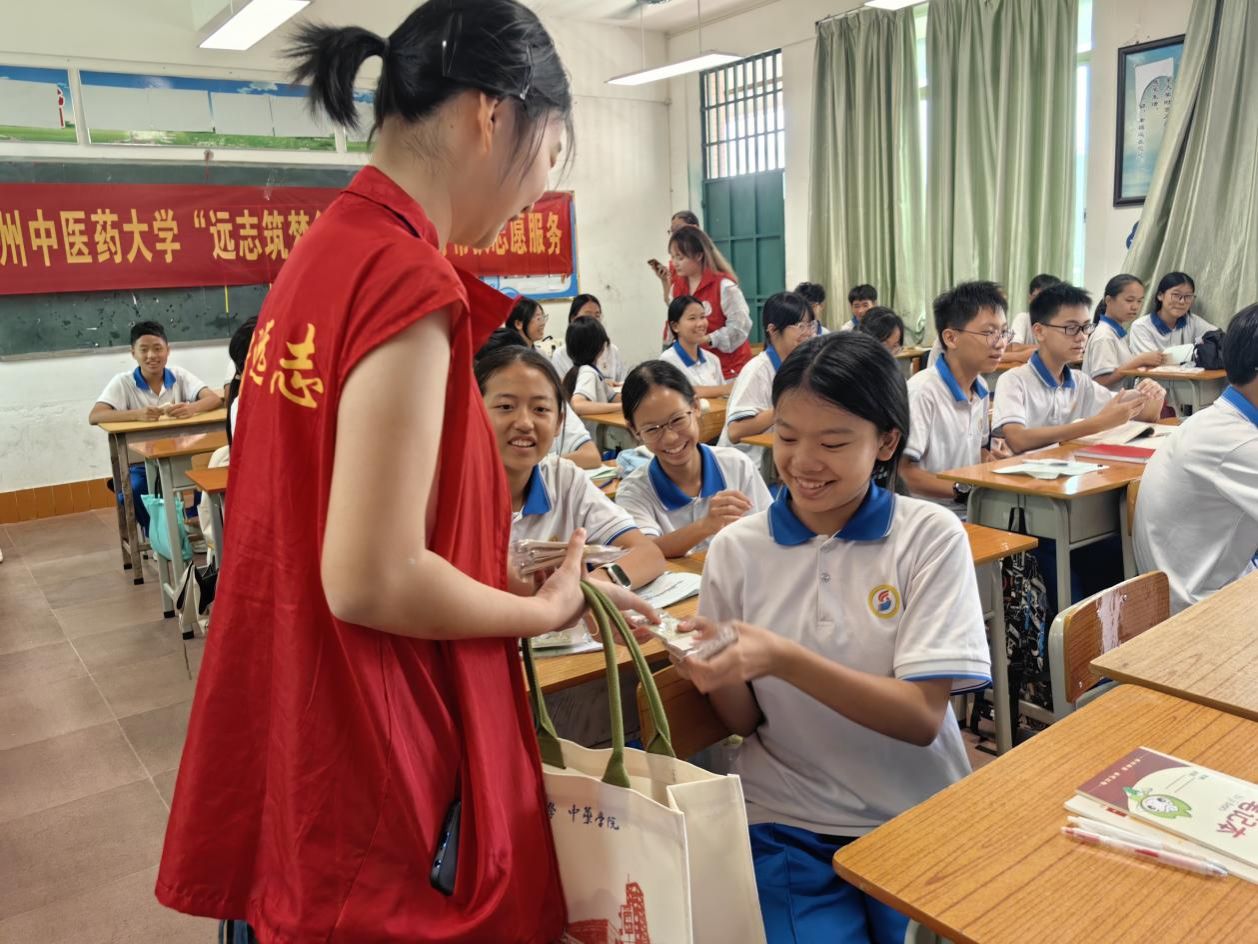 “欢迎各位的再次到来!” 清远市清城区松岗中学校园里,老师的热情问候点亮了大学生 “小老师” 的笑脸。广州中医药大学青葙远志志愿服务队再赴松岗中学,用知识与热忱为青春校园添上了一抹温暖的色彩。