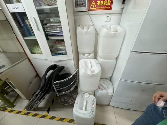 3.废液存放位置不当,置于电箱下。