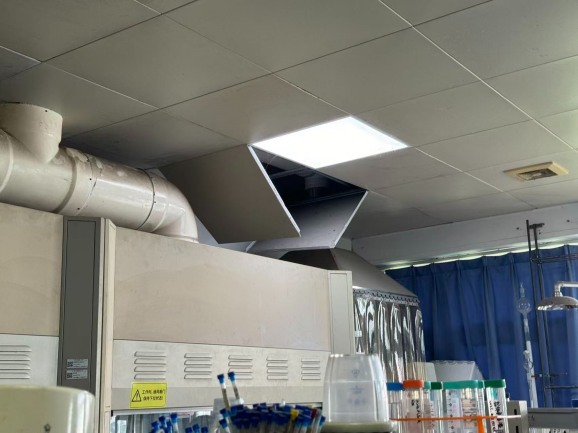 实验室整体环境杂乱,卫生较差,台面未责任到人 天花板掉落等报修滞后