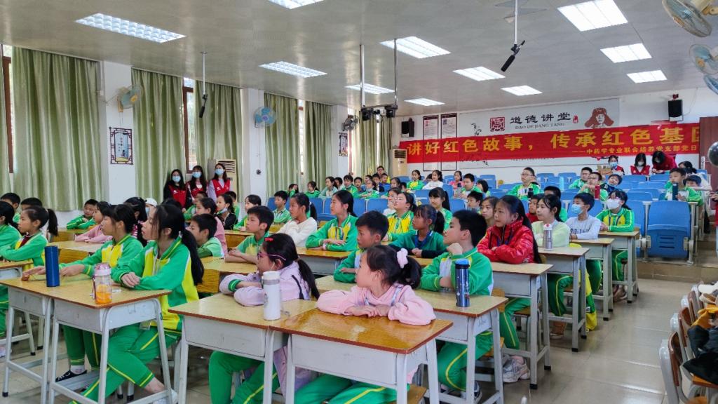 首先由陈书记和郭校长致辞。陈书记感谢了穗石小学领导老师和同学们对本次活动的支持,强调红色文化精神的重要性,少年儿童作为祖国的未来与希望,要努力学习红色故事,传承红色基因。郭校长对广中医的领导老师和同学们的到来表示欢迎,并要求同学们认真听讲,用最饱满的精神状态聆听红色故事,学习红色文化,感悟红色精神。