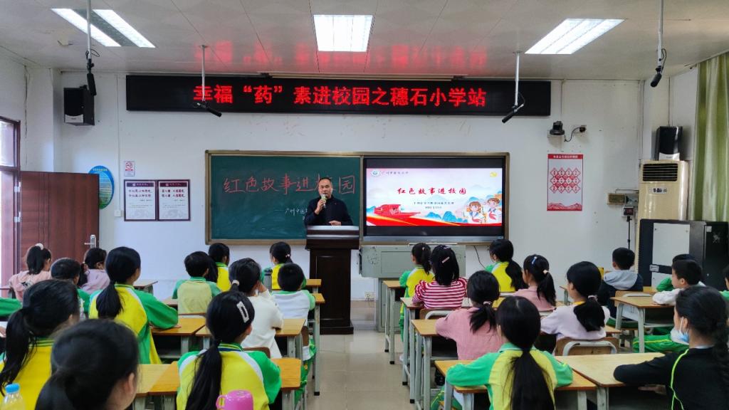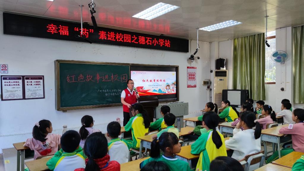 为扎实推进党史学习教育走深走实,入心入脑, 12月3日下午,伟德国际1946源于英国党委副书记陈其煌带领中药学专业联合培养党支部全体同志走进穗石小学,开展主题为“讲好红色故事,传承红色基因”的“红色故事进校园”党日活动,穗石小学80名五年级学生参加活动,穗石小学校长郭伟文,教导处主任梁杰基等老师出席。