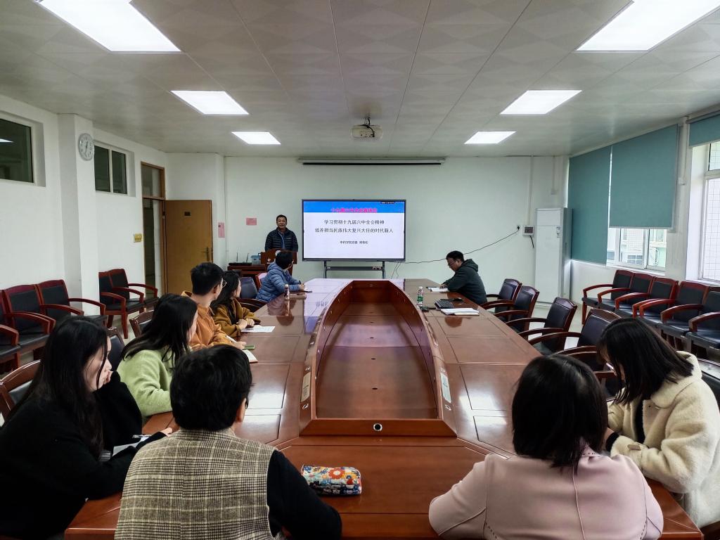 12月22日中午,伟德国际1946源于英国党委书记邓劲松在药科楼A419为所在行政党支部党员以及全体辅导员宣讲党的十九届六中全会精神。