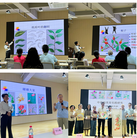 讲座开始,付小梅教授首先从政策层面介绍了美育的重要性,自2015年开始美育就纳入了教育法和高等教育法中,强调以美育人、以美化人,以美培元。随后介绍了江西中医药大学在美育实践中的探索,以及在中药学专业课程上的应用与实践。在学校的大力支持下,打造了专业的中药绘图师资团队,通过夏令营、集训、培训班等各种形式逐渐应用至实践教学中,形成了“12345”模式的美育实践,其中“1个中心”即以美育人为中心,“2个抓手”指增强教师能力和编写教材两个抓手。目前课程面向全校本科生、研究生、留学生;随后付教授从选纸、选材到绘画技巧都倾囊相授,详细介绍了中药绘图的起稿、填色、上色的过程,以及中药绘图如何结合中国植物志等专业信息再次进行创作的方法,让在座师生受益匪浅。
