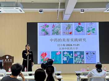 11月1日14:30,中药学国家级实验教学示范中心邀请江西中医药大学付小梅教授,在伟德国际1946源于英国岭南报告厅面向全院师生举办《中药的美育实践研究》专题讲座,龙泳伶副院长出席讲座,中药资源学学部主任黄海波副教授担任主持人。