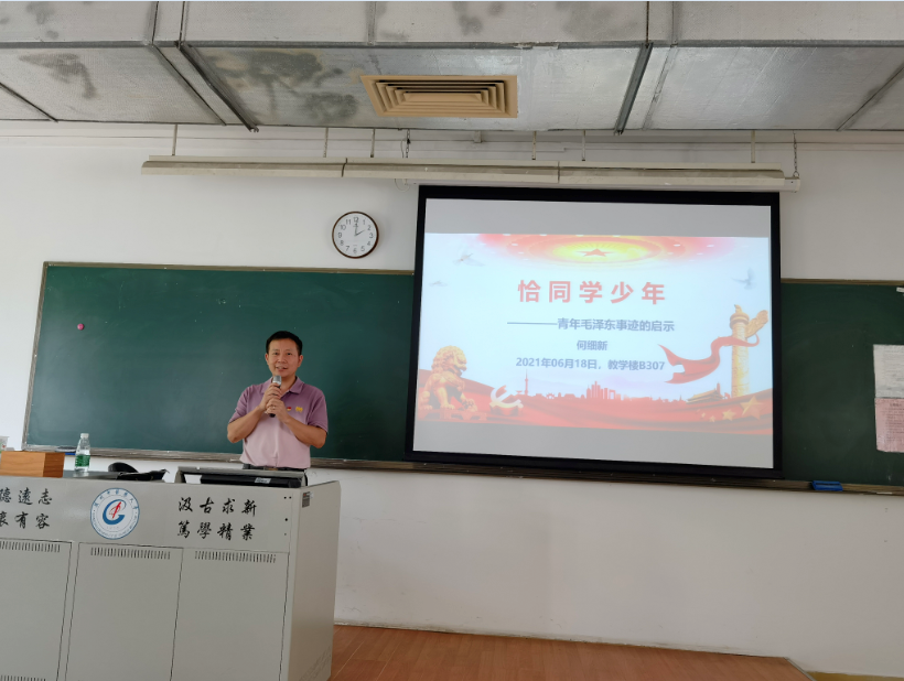 讲课在毛泽东同志《沁园春.长沙》朗诵声 “……恰同学少年,风华正茂……”中结束。(撰稿:何细新 审核:陈其煌)