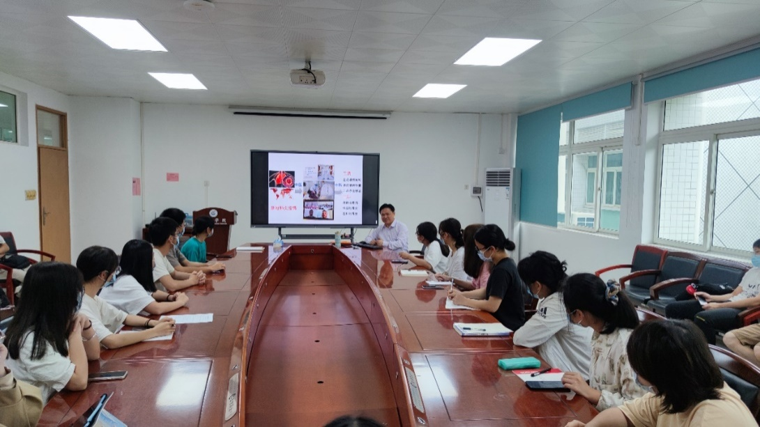 詹若挺院长本次授课分四个部分展开。首先以青蒿素获得诺贝尔奖为例子,分析了中医药传承与发展的现状与趋势,强调“中医药临床有效是硬道理”,并结合自己的学习和工作经历,向同学们阐述了中医药发展的美好前景;随后从我国中药产业的快速发展、新冠抗疫中的“三药三方”研发与应用、广东中药产业的发展创新等方面,向同学们详细介绍了我国我省蓬勃发展的中药产业;并用详实的数据、丰富的图片向同学们展示了广东南药传承与创新方面的实践情况;最后詹院长以全国政协委员唐江澎在2021年“两会”“委员通道”上的讲话(“好的教育应该是培养终身运动者、责任担当者、问题解决者、优雅生活者”)为引,结合同学们的专业背景,勉励同学们利用好专业优势资源,挖掘自身的特长特色,努力学习知识,增长技能,深植爱国情怀,增强使命担当。