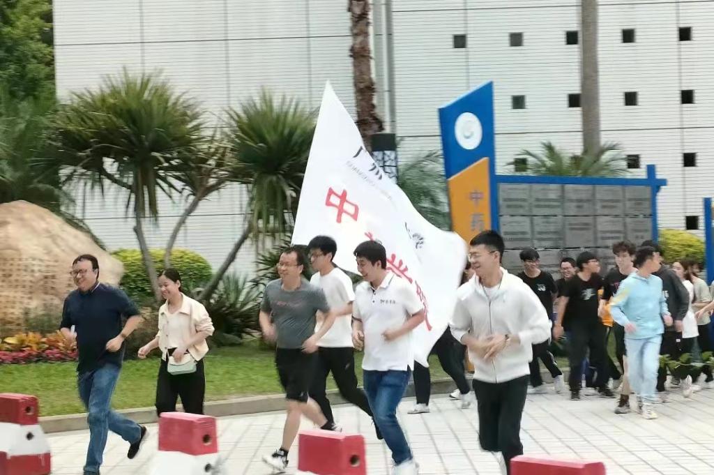 本次环校跑活动的规则是队伍按照设定的路线即围着整座药王山进行携手奔跑,经过一个打卡拍照点,两个选材点;其中,队伍的出发顺序与所要答题的方剂采用现场抽签的方式,选材点需要选择方剂所对应的药材,在答题卡上记下序号。在各个点领取红色丝带绑在手腕,最终绑好红色丝带的全组成员在药科楼C拍完创意合照后,回到药科楼A栋广场完成比赛。本次活动的规则设置结合了伟德国际1946源于英国的特色,让同学们在携手运动过程中了解团队协作的重要性,也同时认识和学习了中药药材,将课堂理论学习应用到实践操作中。