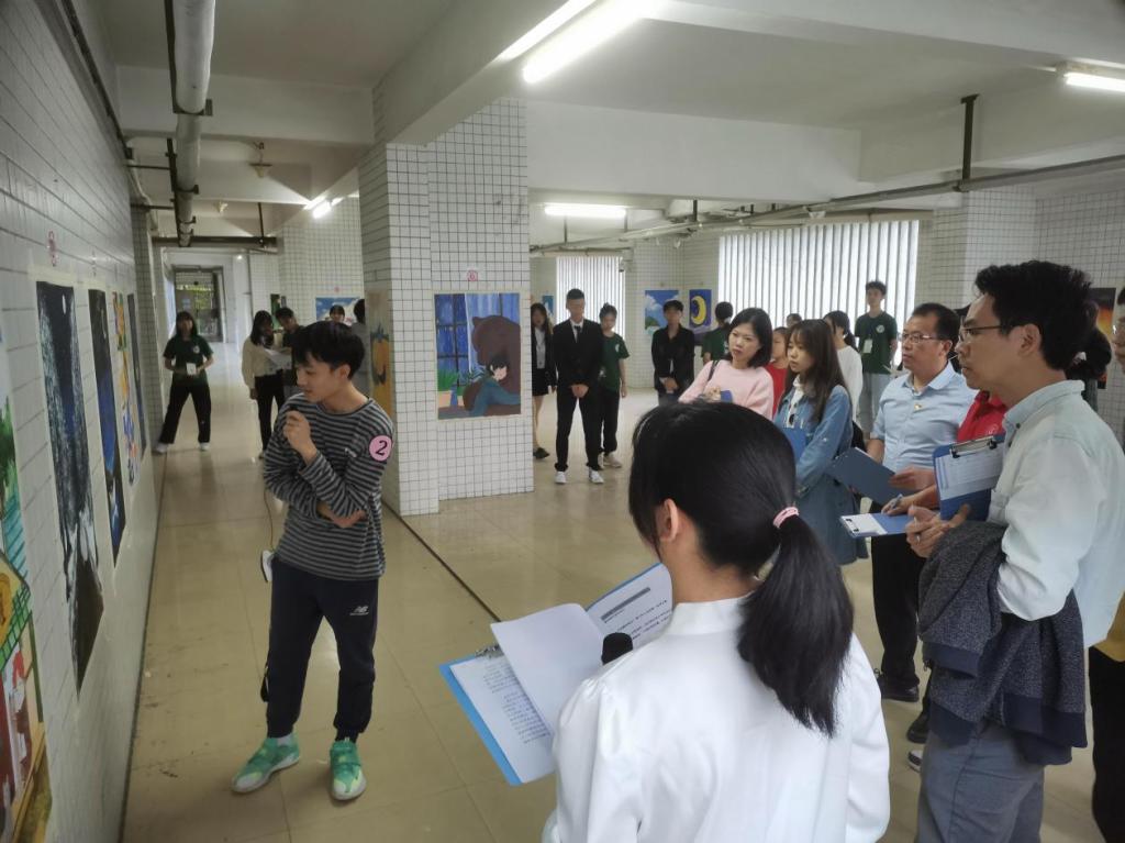 比赛当天由各班讲解员对班级作品的初衷以及意义等进行讲解,评委现场评分。评定完成后,主持人向评委介绍了我们工作室为此次活动准备的作品——《美好的瞬间》。叶增杰老师充分肯定了我们创作的意义,该幅作品用教学楼、夕阳和国旗展现了我们奋斗而充实的青春,努力之后抬头的风景便是美丽的瞬间。最后评分结果出炉,评委老师对获奖作品班级代表进行颁奖以及获奖班级代表发表获奖感言。